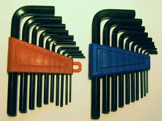 Hexagon keys metric 10 piece set. Fully hardened steel in handy red clasp. Contains 2, 2.5, 3, 3.5, 4, 5, 5.5, 6, 8, 10mm keys. Hexagon keys imperial 10 piece set. Fully hardened steel in handy blue clasp. Contains 1/16, 5/64, 3/32, 1/8, 5/32, 3/16, 7/32, 1/4, 5/16, 3/8 inch keys.